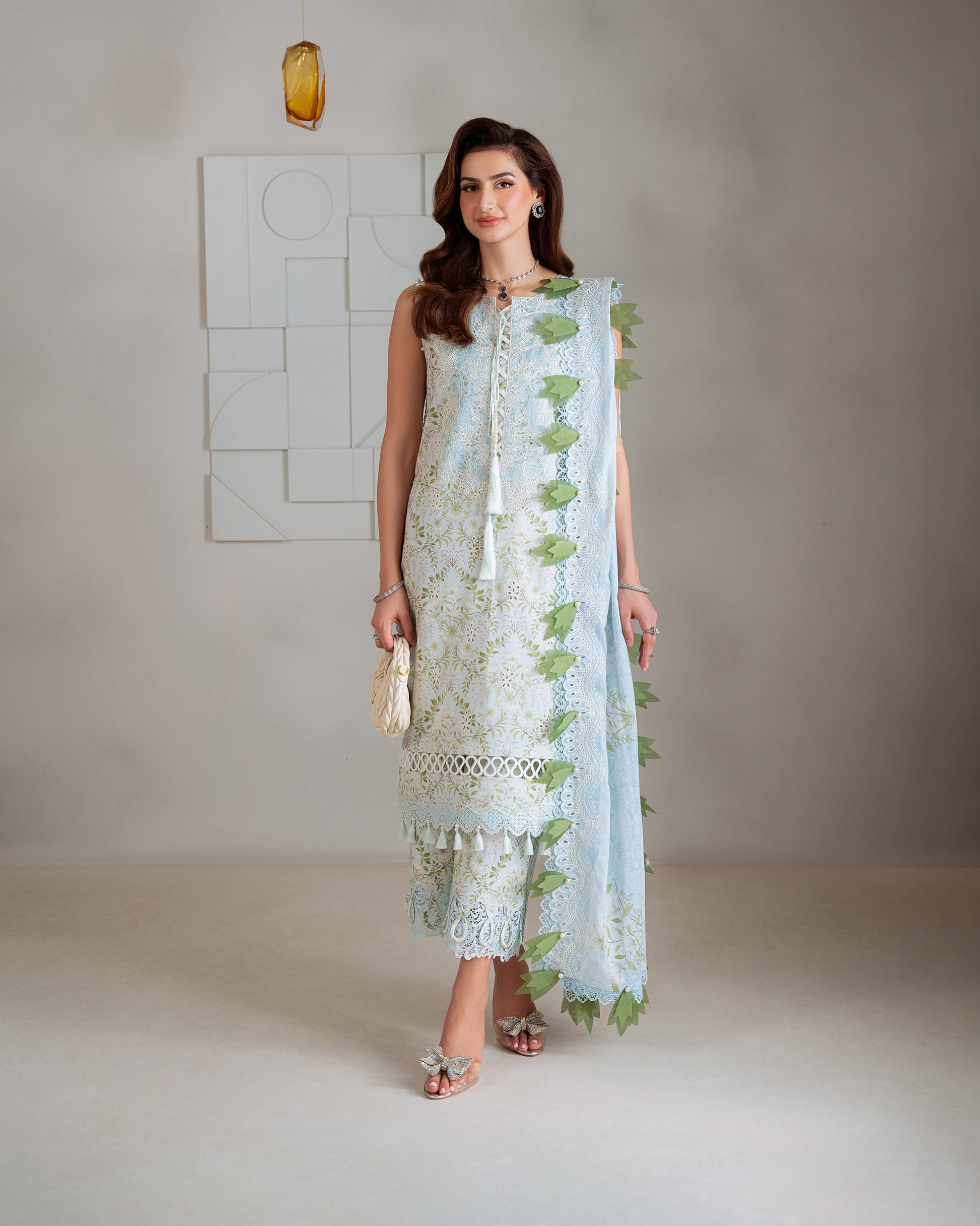 2.5M Digital Printed Chikan Cut-Work Lawn Dupatta