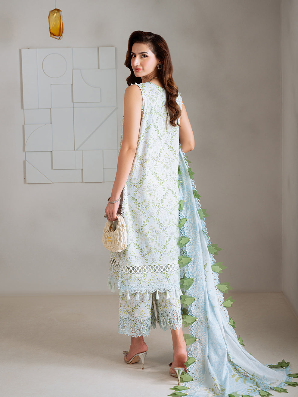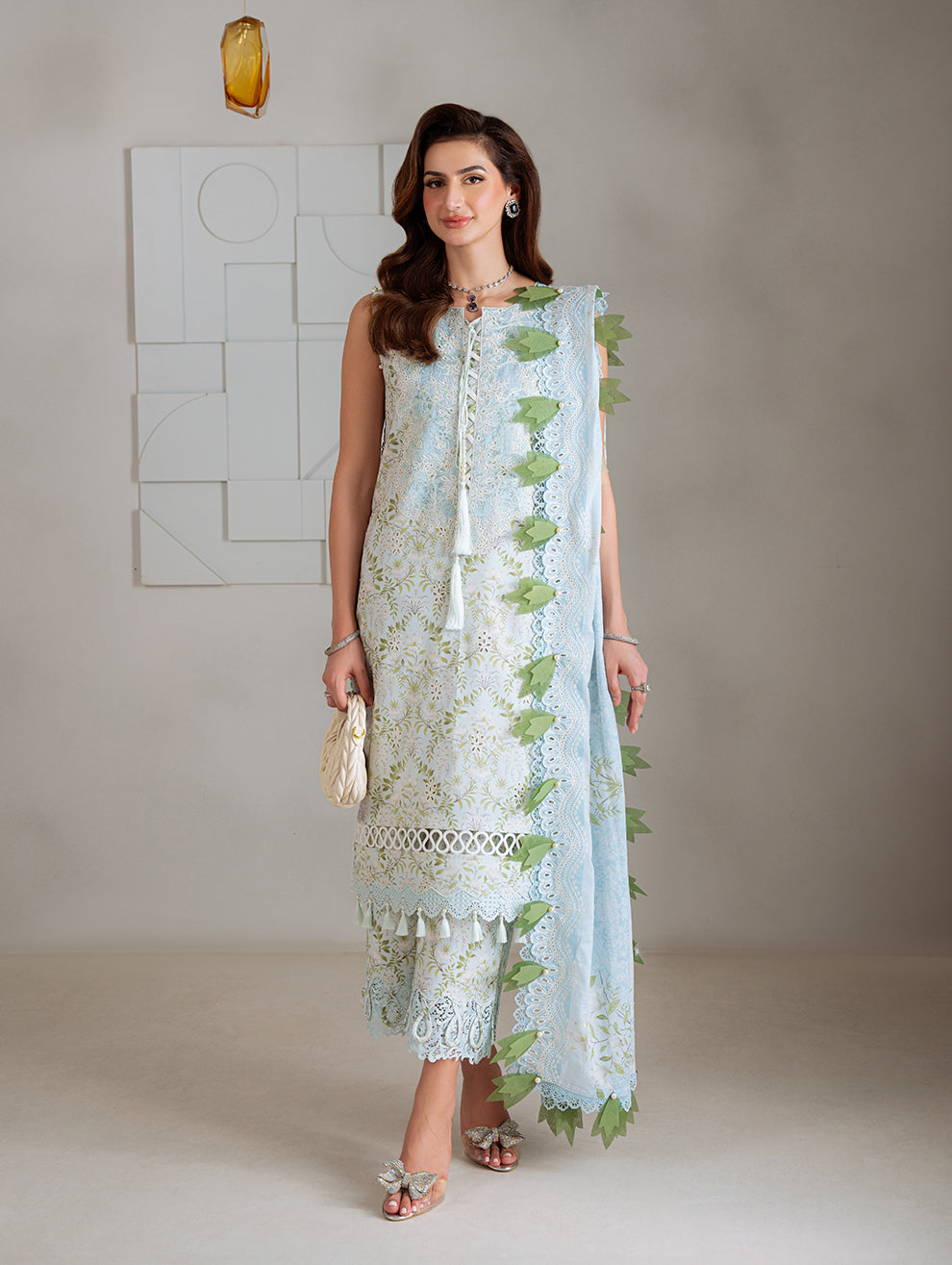 2.5M Digital Printed Chikan Cut-Work Lawn Dupatta